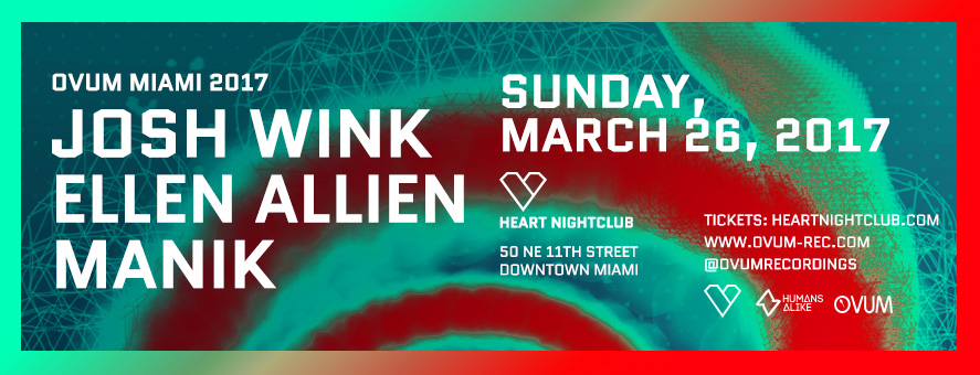 Ovum Miami 2017 Josh Wink Ellen Allien MANIK Sunday, March 26, 2017 Heart Nightclub 50 NE 11th Street Downtown Miami Tickets: HeartNightclub.com
